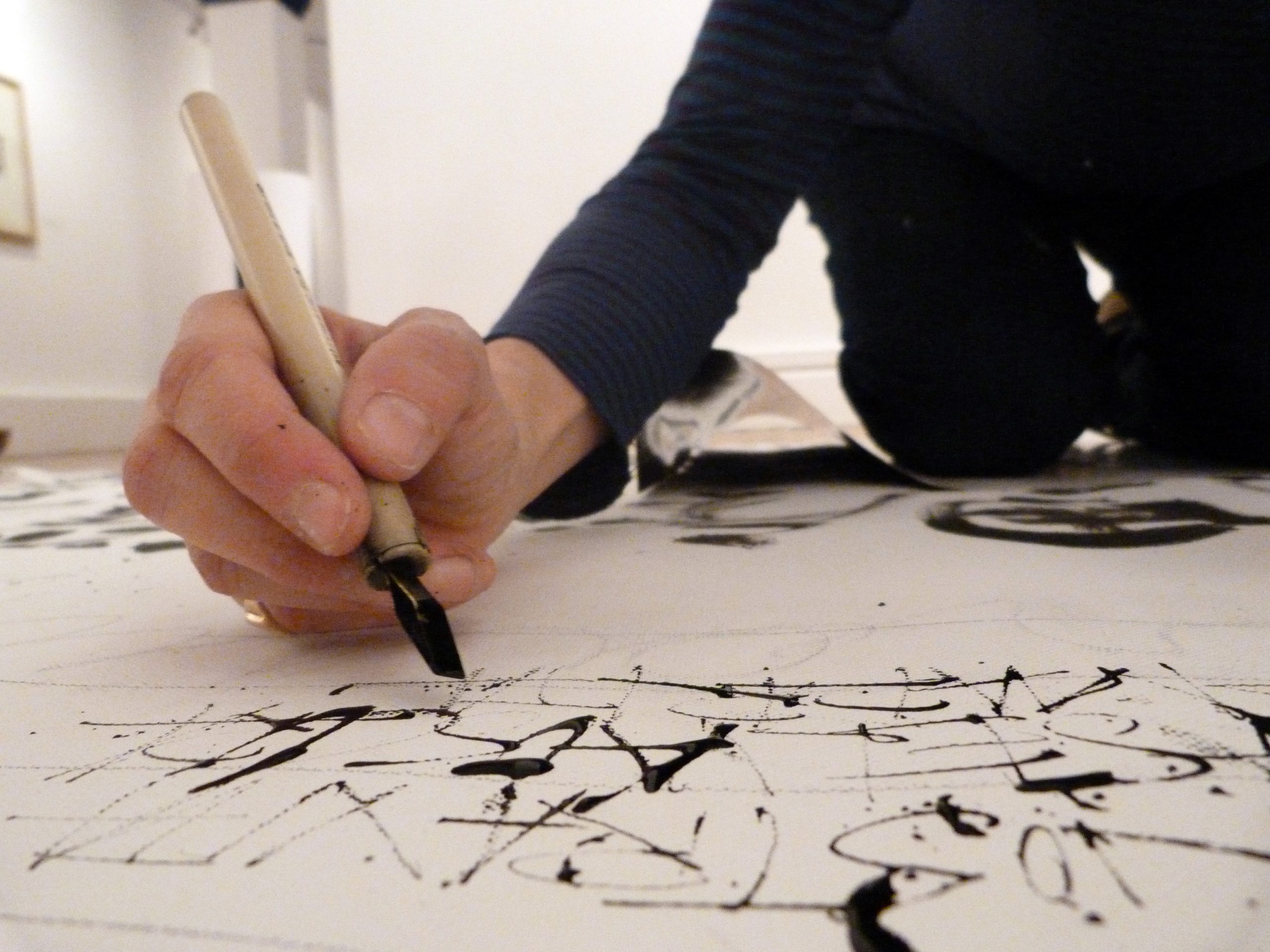 Da molti anni seguo seminari e corsi di calligrafia sia storica che gestuale, svolgendo in tale ambito anche un’attività di ricerca e approfondimento che si accompagna a un costante impegno per la diffusione della scrittura a mano e dei valori di cui è portatrice. In ambito di calligrafia gestuale, negli anni ho approfondito, ricercato e sperimentato tante tecniche, facendo molto spesso tendere il lavoro al puro segno.
